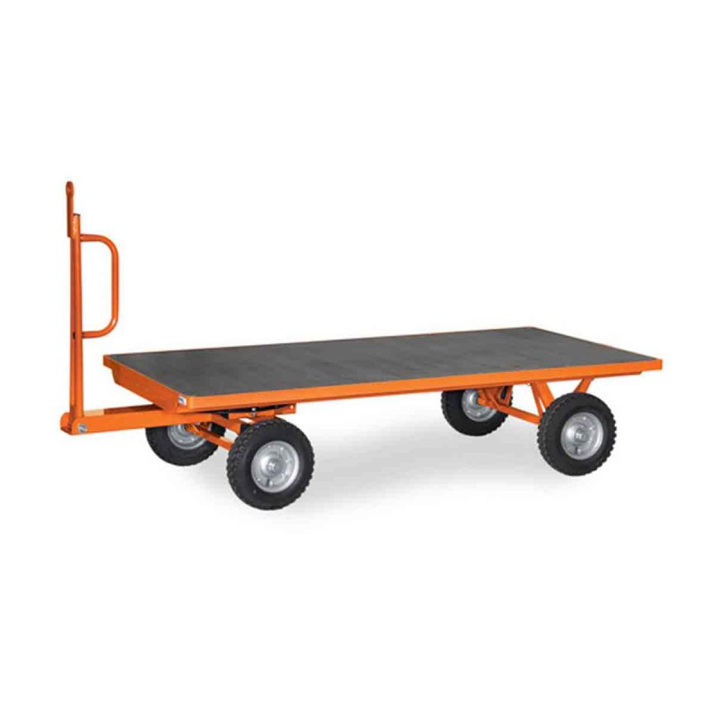 Cette remorque industrielle FETRA est disponible uniquement sur commande avec un délai de fabrication de 6 à 7 semaines. Elle dispose d'un plateau en contreplaqué antidérapant ce qui vous permettra de garder votre cargaison stable même sur un sol en pente.