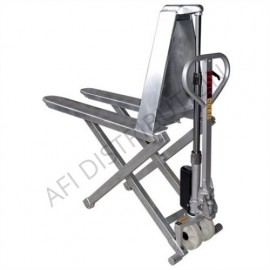 Ce transpalette manuel haute levée galvanisé de qualité premium possède une capacité de charge d'1 tonne.